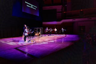 A United Worship Ministries team leads Vespers in Benson Great Hall.