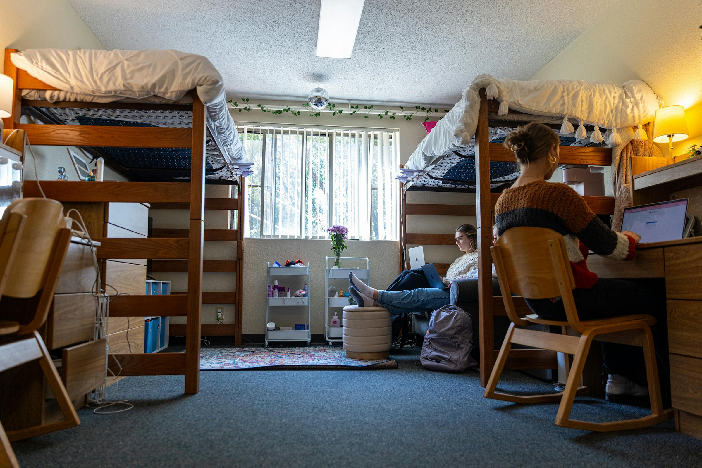 First-year students Grace Wynia ’27 and Hanna Ahlquist ’28 are roommates in Edgren Hall on "Freshman Hill" at Bethel University